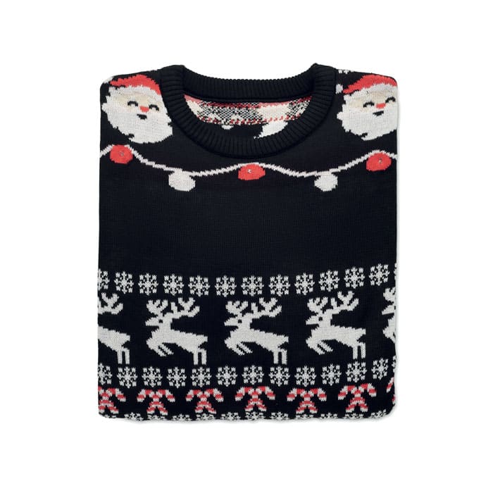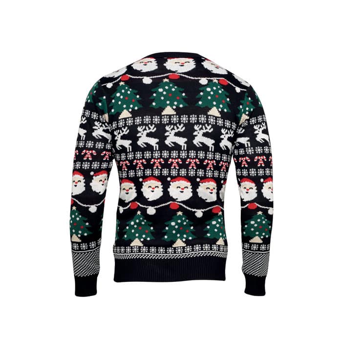 Le pull de Noël SHAMIS avec LED intégrées offre une visibilité festive unique pour vos événements d’entreprise.