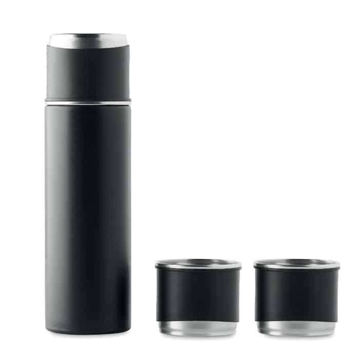 Flasque de 420 ml, couvercle-tasse étanche, plus deux tasses de 150 ml chacune.