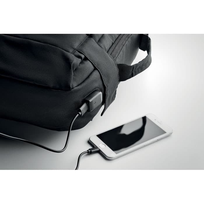 Le sac à dos publicitaire SINGAPORE allie praticité et durabilité grâce à son compartiment pour ordinateur 16 pouces et son câble USB intégré.