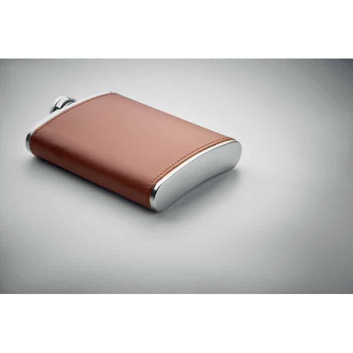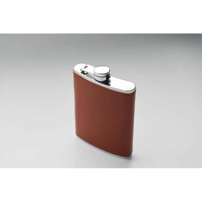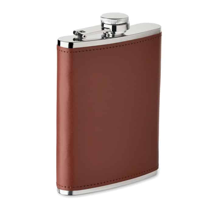 La flasque Slimmy se distingue par son design fin et moderne, conçu en acier inoxydable robuste et recouvert d’un élégant revêtement en cuir PU. Avec une capacité de 200 ml, elle offre un équilibre parfait entre compacité et contenance, idéale pour une utilisation quotidienne.