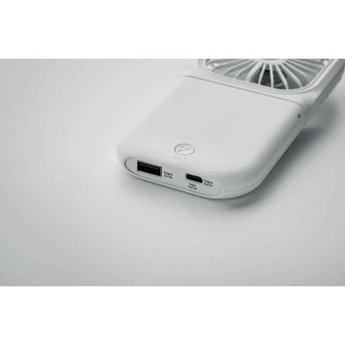 Le STANDFAN combine praticité et innovation : ce ventilateur pliable portable dispose d’un cordon de cou ajustable pour un transport facile, et de trois vitesses permettant d’adapter le flux d’air selon les besoins. Replié, il se transforme en ventilateur de bureau compact. Sa batterie intégrée de 3000 mAh offre également une fonction power bank avec des ports Type-C en entrée et Type A en sortie, renforçant son utilité au quotidien. Personnalisable, cet objet publicitaire est un excellent vecteur de communication pour votre marque, combinant utilité et visibilité.