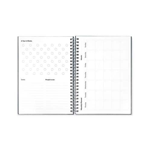 - Pages : 2 pour tâches, 10 pour organisation hebdomadaire, 1 mensuelle, 1 annuelle (semaines), 22 pages tableau blanc