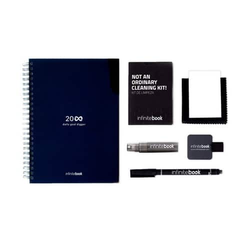 STARTER KIT INFINITE PLANNER A5. Le set comprend un « infinite Diary », un kit de nettoyage, un marqueur et un porte-marqueur