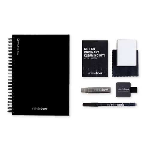 STARTER KIT INFINITEBOOK A5. Le set comprend un « Infinitebook », un kit de nettoyage, un marqueur et un porte-marqueur