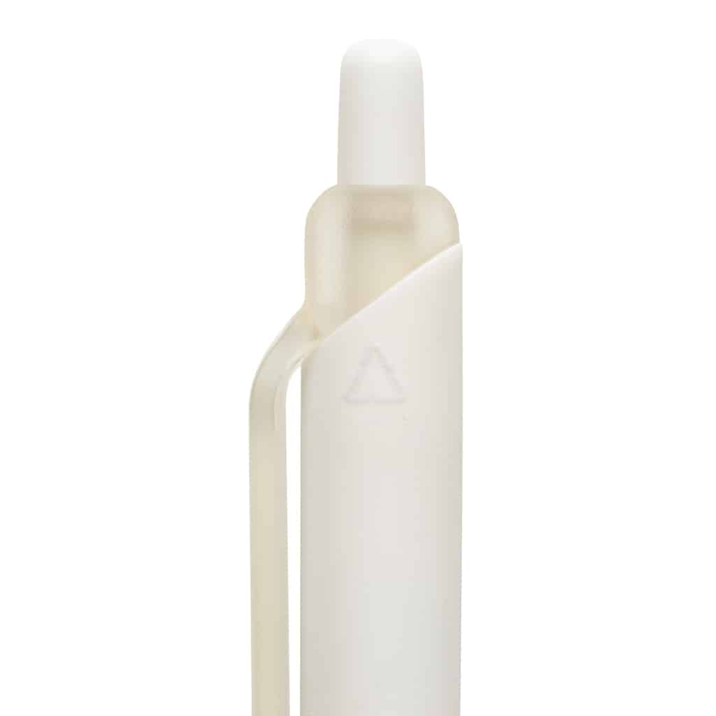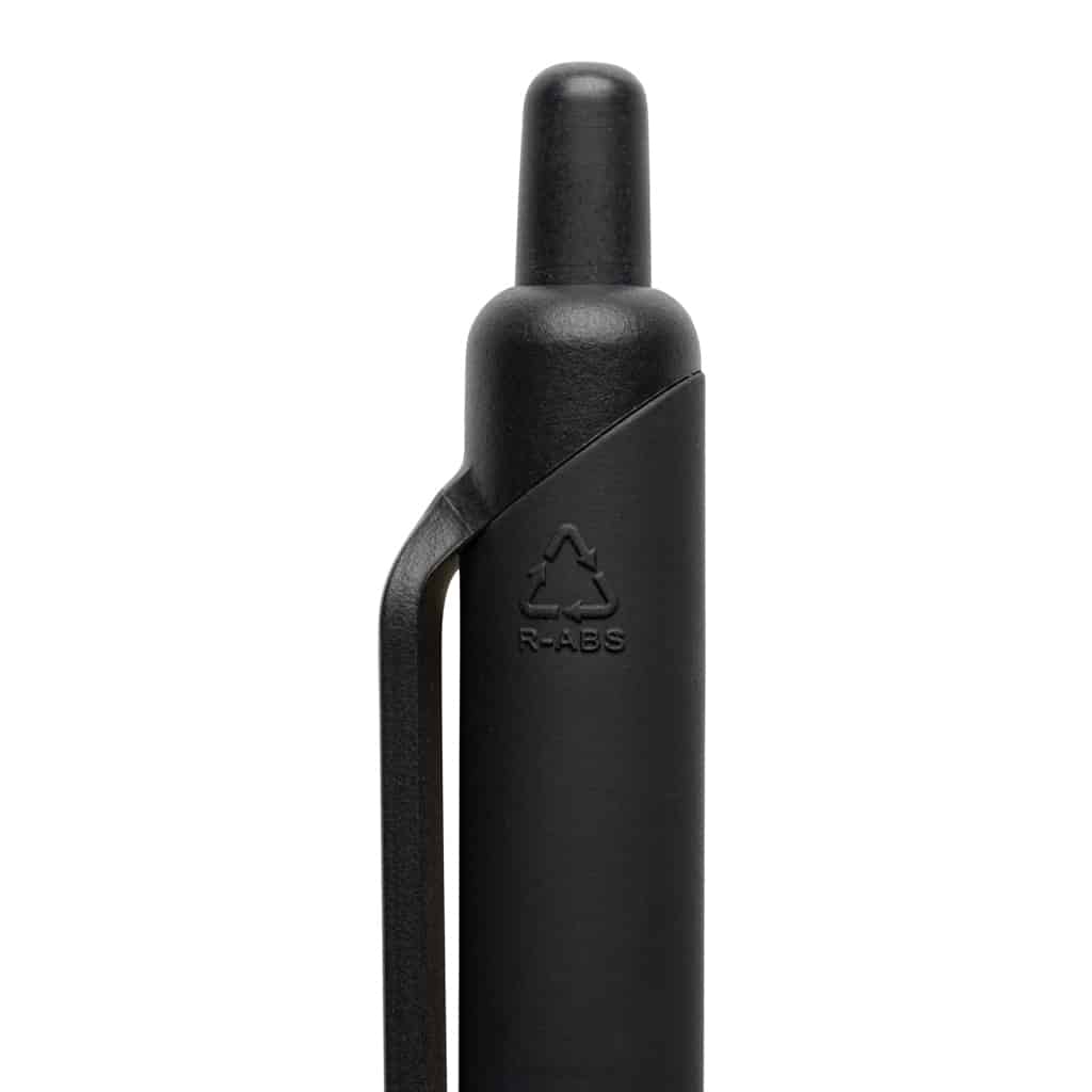 Stylo avec finition gomme en ABS recyclé certifié GRS Tide, alliant écologie et confort d’écriture.