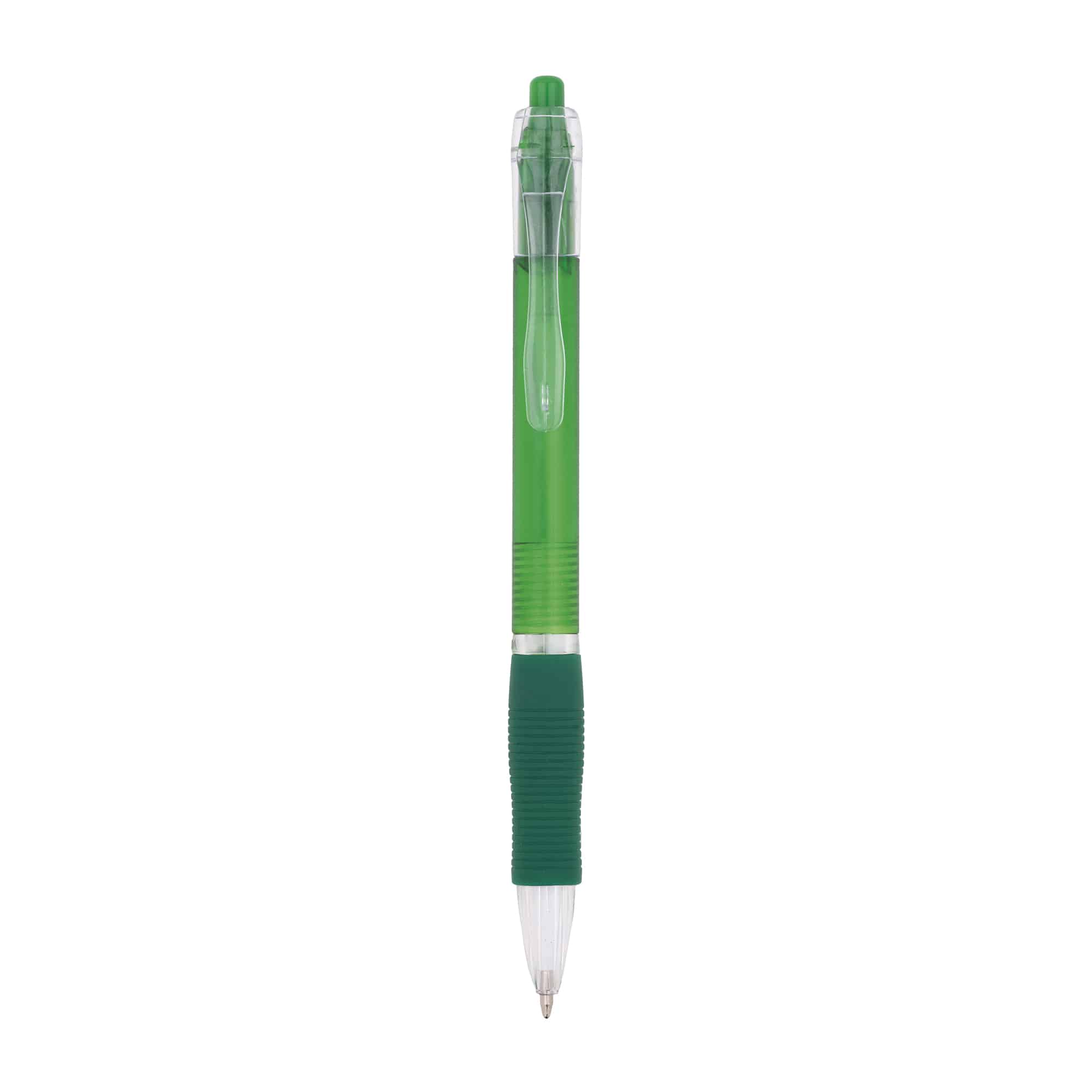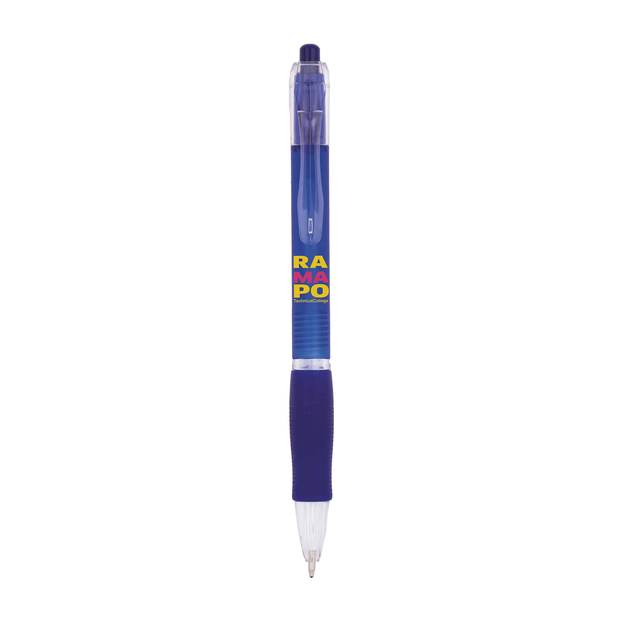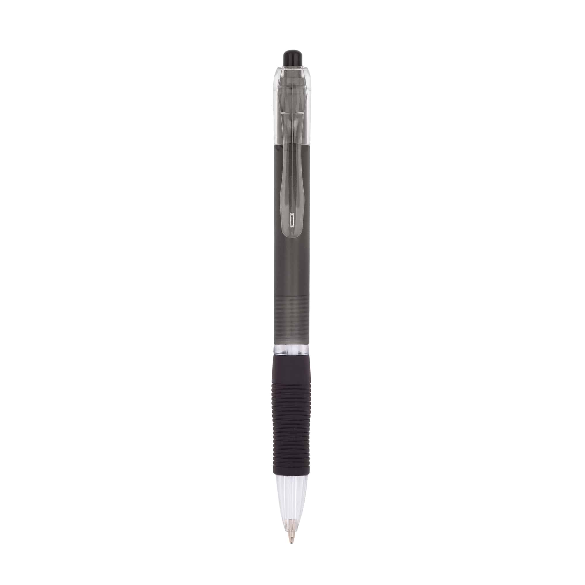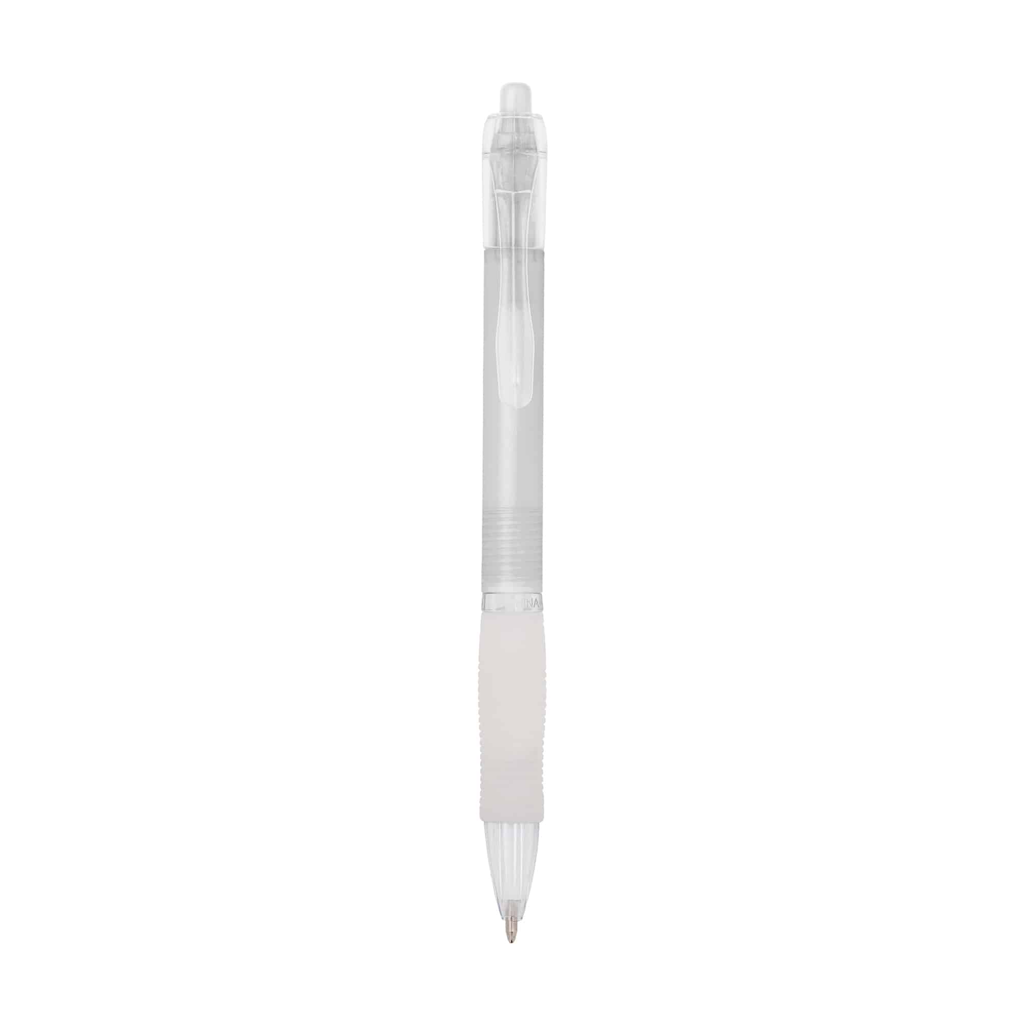 Le stylo publicitaire personnalisable avec corps translucide et zone caoutchoutée assure confort et visibilité.