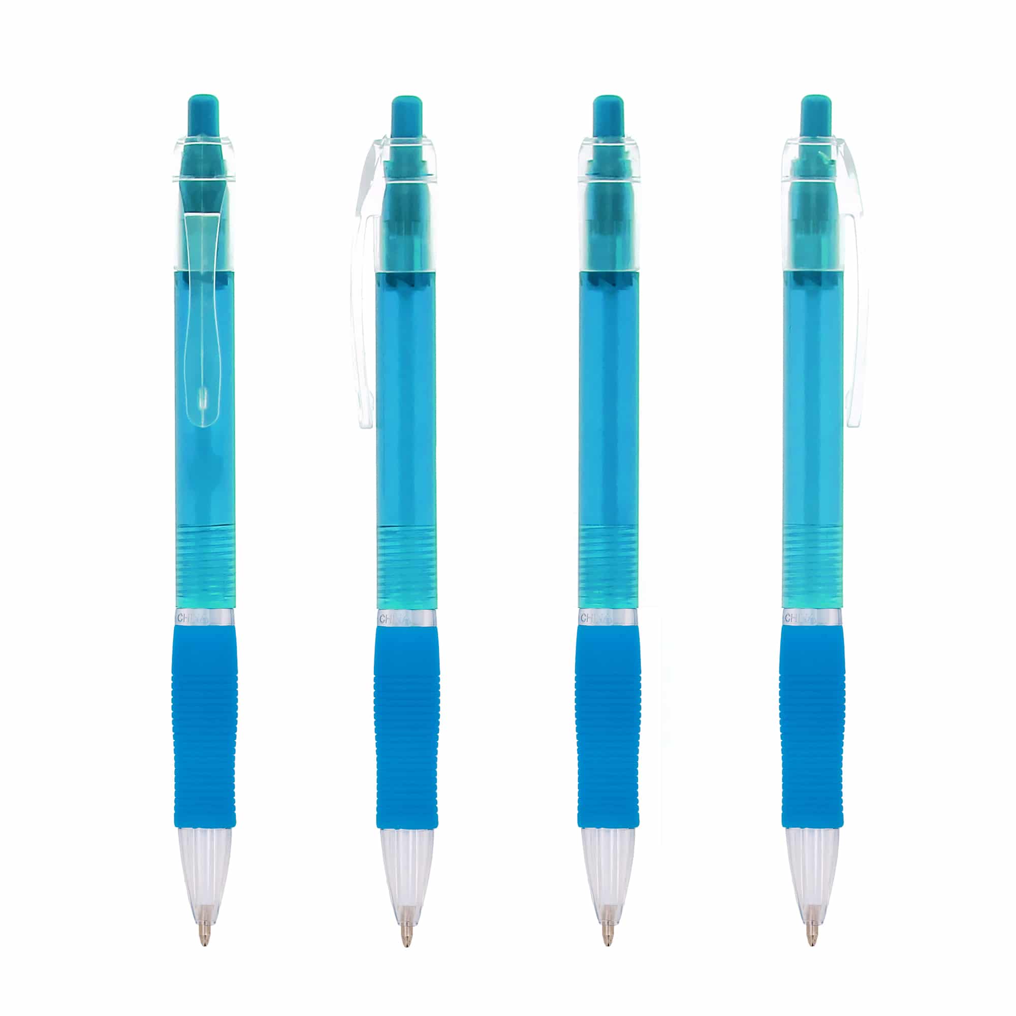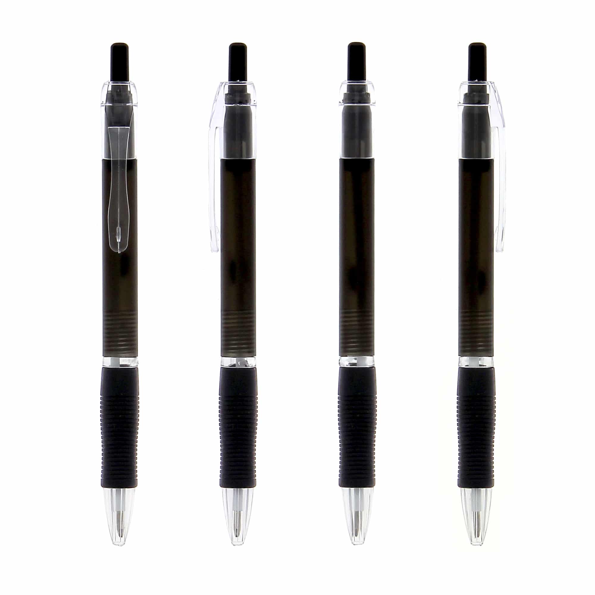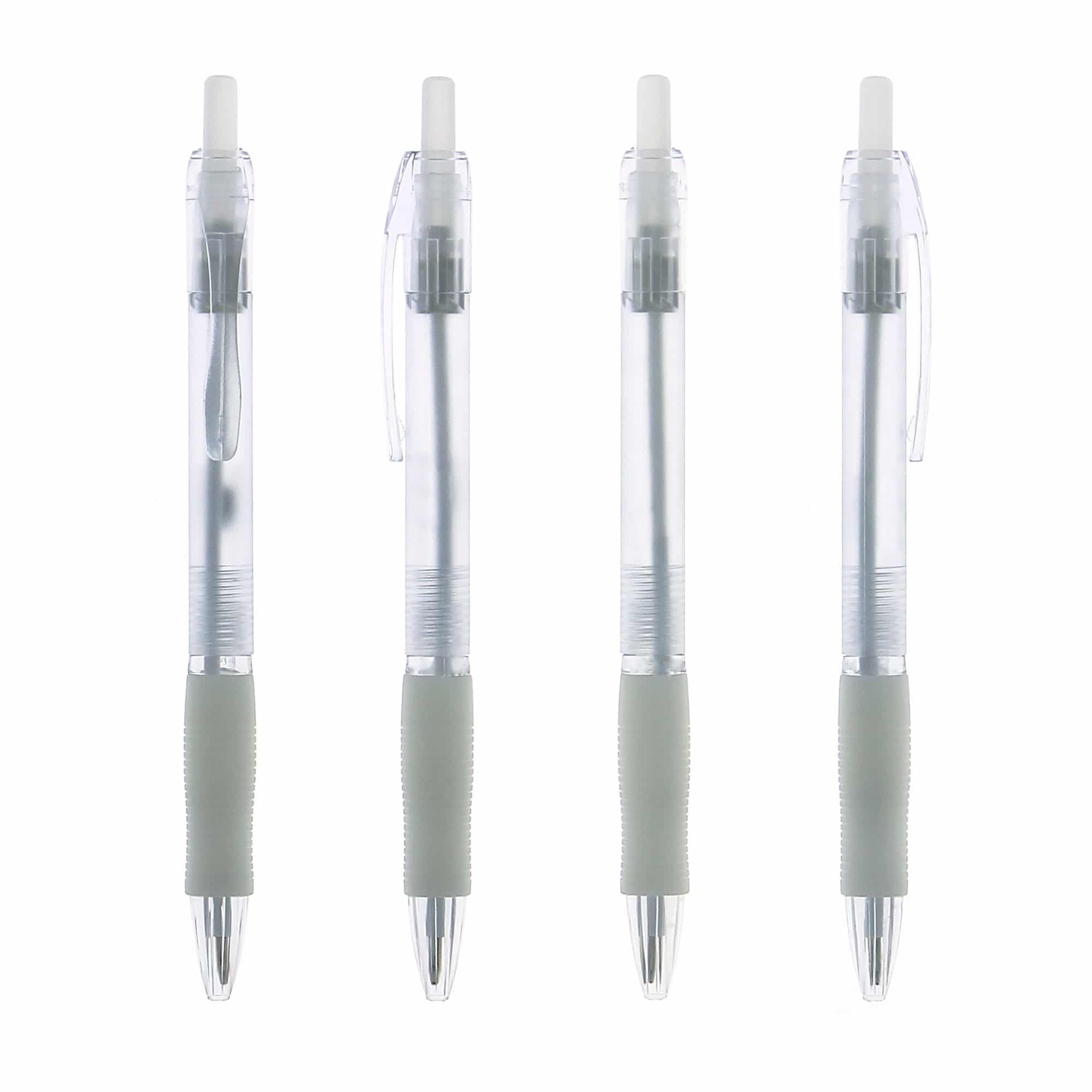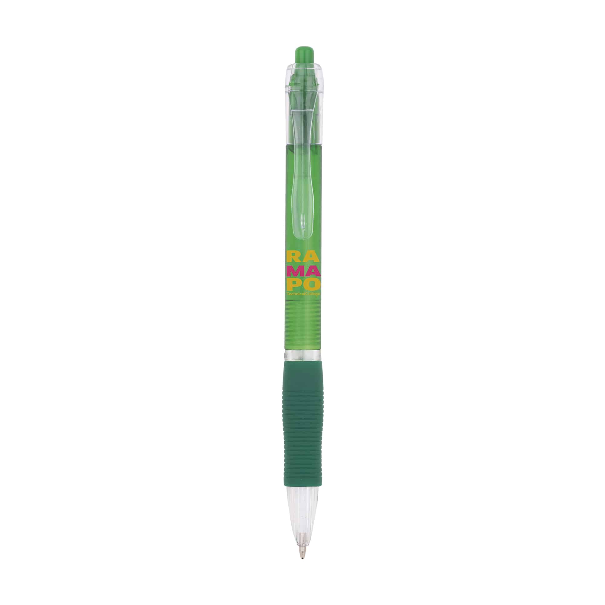 Le stylo publicitaire personnalisable avec corps translucide et zone caoutchoutée assure confort et visibilité.
