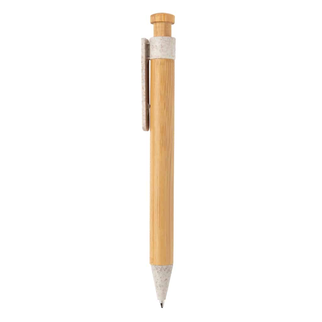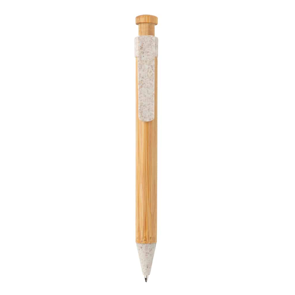 Ce stylo allie design naturel et fonctionnalité grâce à sa conception en bambou et son clip en fibre de paille de blé (60% paille de blé, 40% ABS). Il constitue un excellent vecteur de visibilité, adapté aux messages d’entreprise soucieux d’environnement.