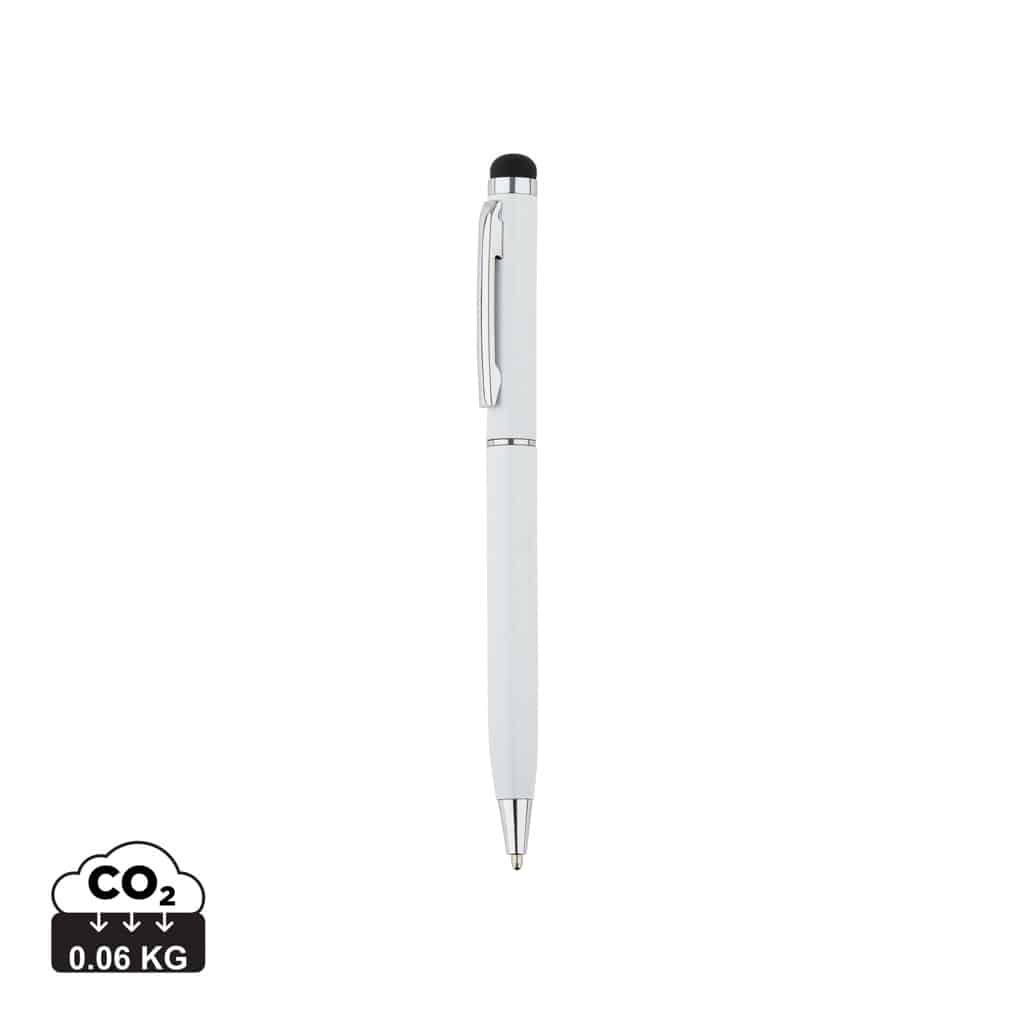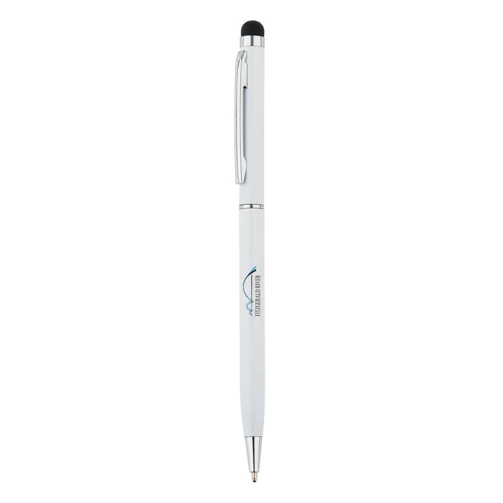 Ce stylo-stylet fin en métal combine fonctionnalité et design raffiné. Son corps en aluminium assure une prise en main agréable et une durabilité optimale. Le mécanisme de torsion facilite l’usage du stylo à bille tandis que l’embout stylet permet une navigation fluide sur écrans tactiles. Personnalisable avec votre logo, il devient un outil efficace pour renforcer la visibilité de votre marque.