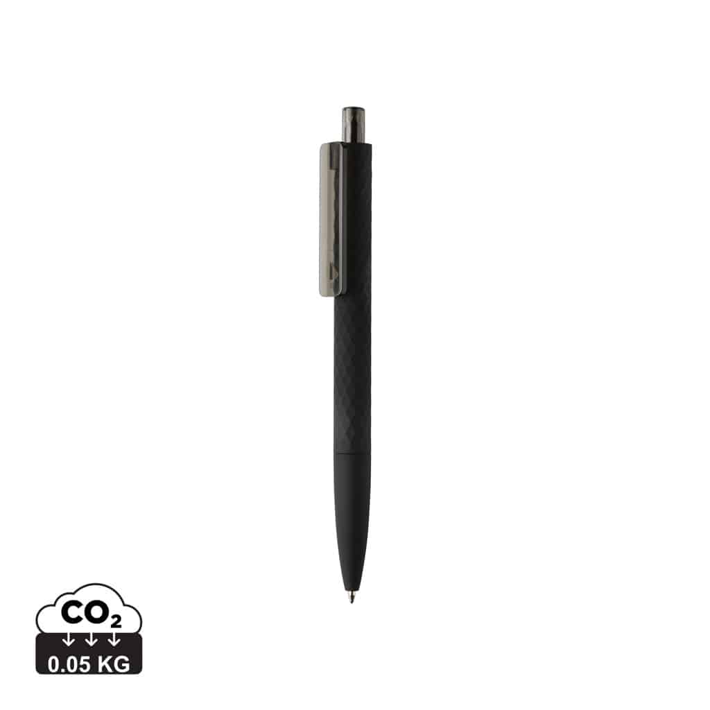 Fabriqué à partir de 54% d’ABS recyclé, le stylo X3 est certifié durable. Sa finition gomme noire avec motif losange texturé garantit un confort accru et une meilleure adhérence.