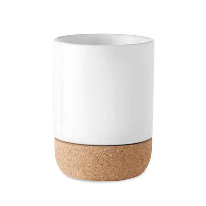 La SUBCORK est une tasse céramique personnalisable avec base en liège naturel, idéale pour valoriser votre communication d’entreprise.