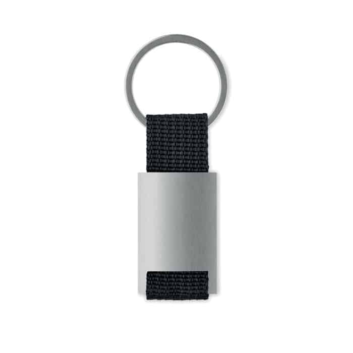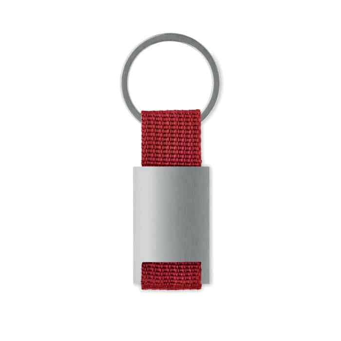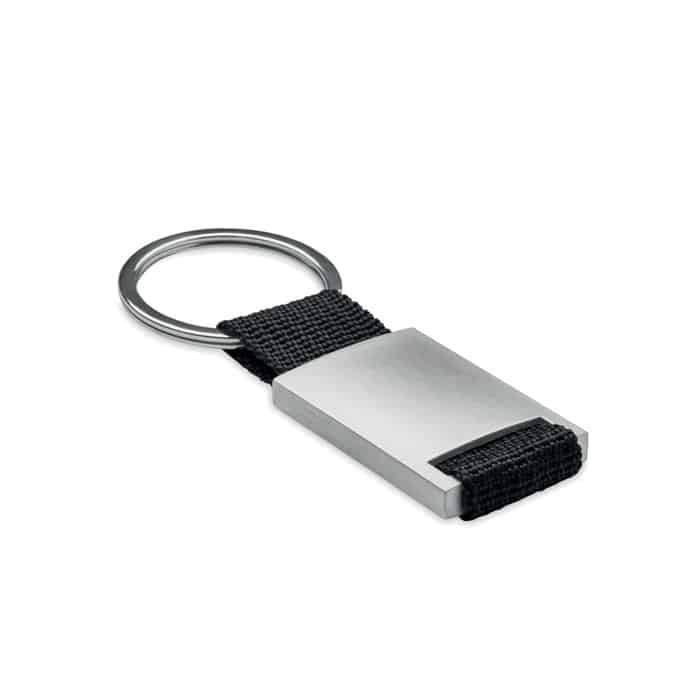 Le porte-clés combine un métal résistant et une sangle en polyester coloré qui apporte une touche dynamique et personnalisable.