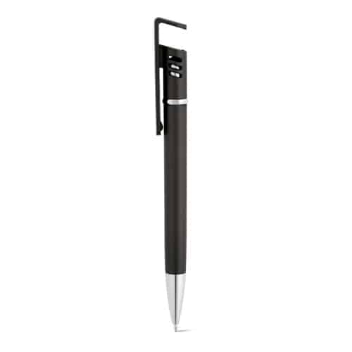 Stylo à bille en ABS à finition métallique, pointe tactile et support pour téléphone portable