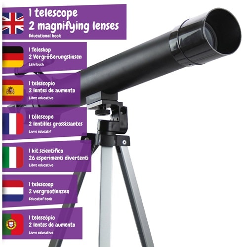 Ce télescope éducatif est conçu pour initier les enfants à l'observation de la Lune, des planètes et des étoiles. Accompagné d'un livre pédagogique, il offre un apprentissage ludique et interactif qui stimule la découverte des phénomènes célestes. Ce jeu favorise le développement de compétences en sciences et encourage une passion naissante pour l'astronomie.