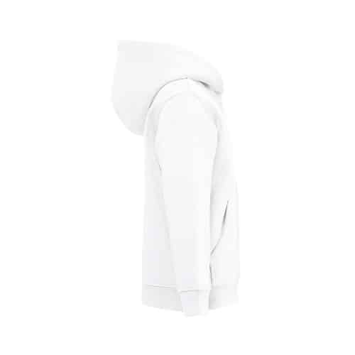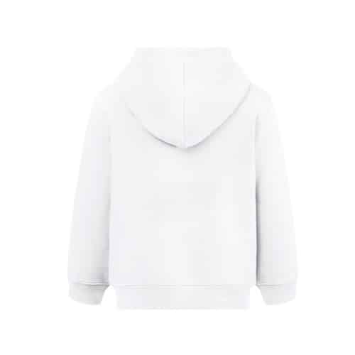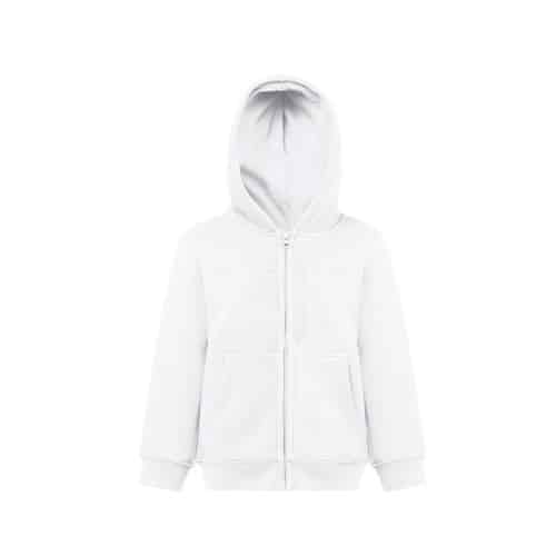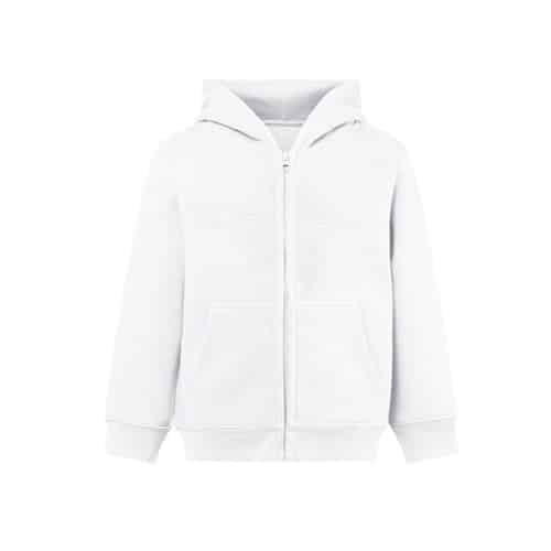 Cette veste est en éponge d’Amérique (320 g/m²) composée à moitié de coton durable et à moitié de polyester recyclé. Conforme aux normes de sécurité européennes, elle garantit un usage sécurisé chez l’enfant grâce à sa capuche dépourvue de cordon de serrage.