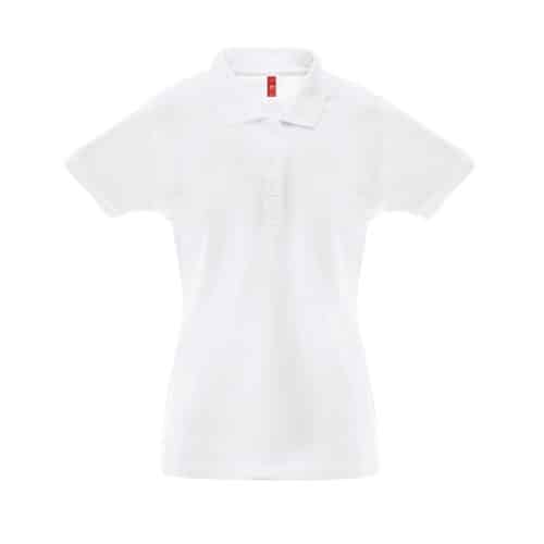 Polo pour femme à manches courtes en tricot piqué de coton 35% coton cardé et 65% polyester (200 g/m²). Col et manches côtelés, le col est renforcé par un ruban piqué. Comprend une patte de boutonnage renforcée avec 3 boutons de couleur (bouton de rechange sur la couture intérieure). Pièce Coupée et cousue