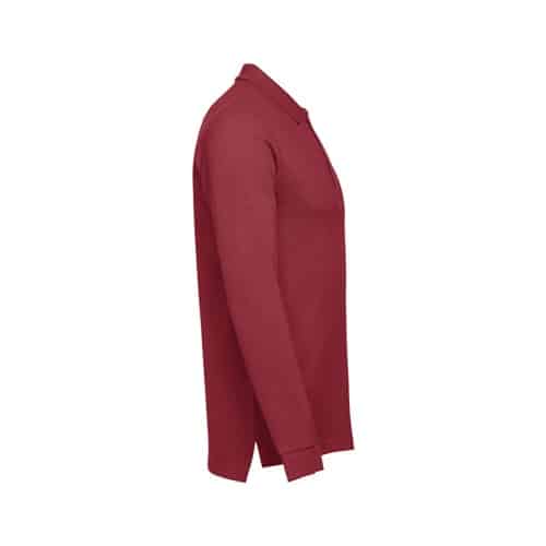 Polo à manches longues pour homme en maille piquée 100% coton (210 g/m²) (couleur 183 : 85% coton /15% viscose). Polo de coupe classique avec col et poignets côtelés, le col est renforcé par une bande en maille piqué. Contient une patte de boutonnage renforcée avec 3 boutons colorés (bouton de remplacement inséré dans la couture intérieure). Pièce découpée et cousue avec ouvertures latérales en bas