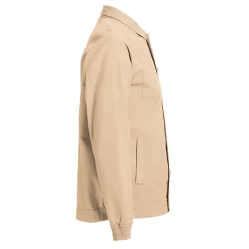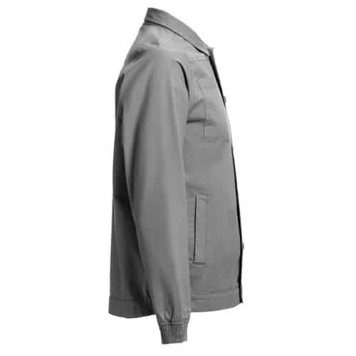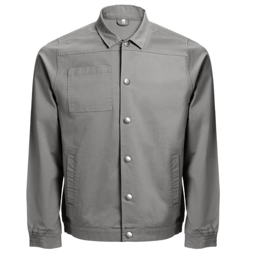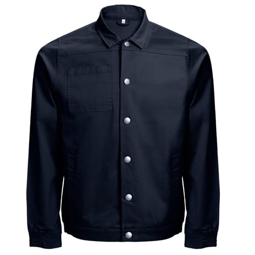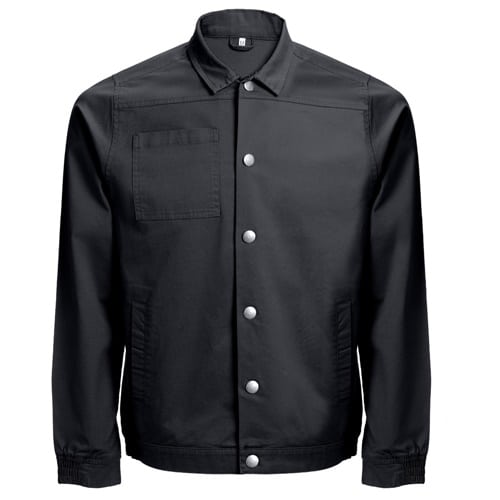 Veste en coton 98% et élasthanne 2% (240 g/m²). De coupe moderne, elle comporte 2 pinces dans le dos et des élastiques aux poignets et à la taille. Le boutonnage se fait par boutons pression. Comprend 2 poches arrière et 1 poche poitrine