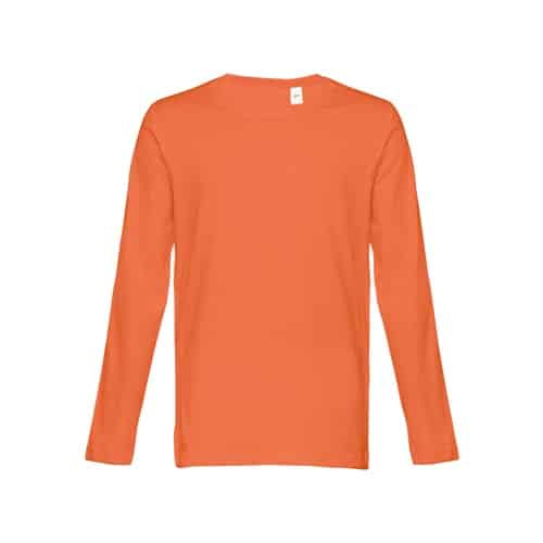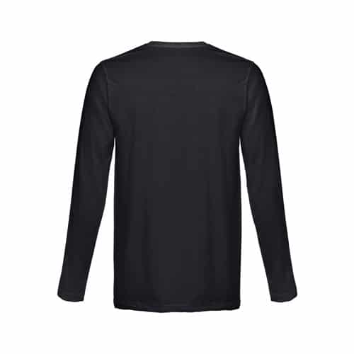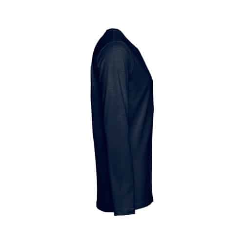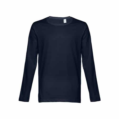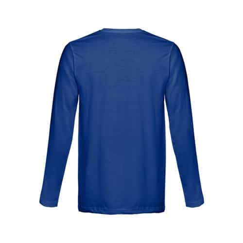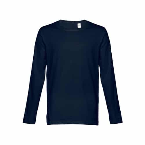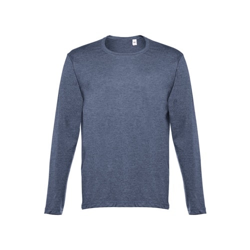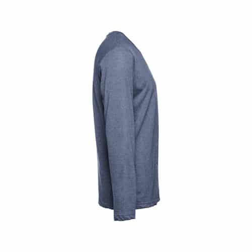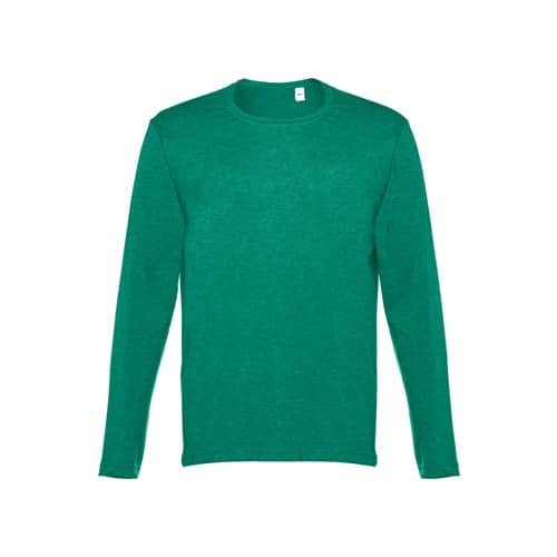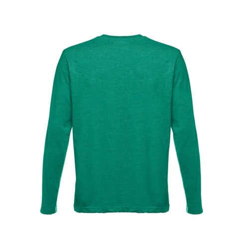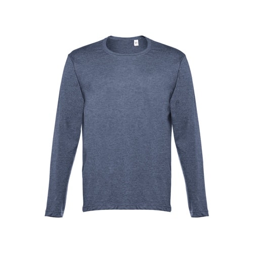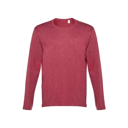 T-shirt manches longues pour homme en maille jersey 100% coton (150 g/m²) avec fil de coton cardé (couleurs: 195: 60% coton/40% polyester, couleur 183: 90% coton/10% viscose). Col côtelé 1×1 et bande de renfort en jersey. T-shirt tubulaire avec coupe régulière et double couture sur les manches et le bas
