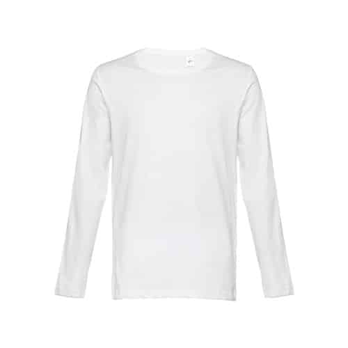 T-shirt manches longues pour homme en maille jersey 100% coton (150 g/m²) avec fil de coton cardé. Col côtelé 1×1 et bande de renfort en jersey. T-shirt tubulaire avec coupe régulière et double couture sur les manches et le bas