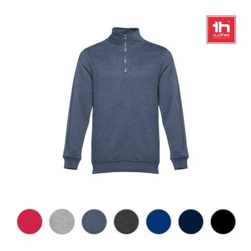Le sweat-shirt col zippé unisexe personnalisable allie confort et visibilité pour votre communication d’entreprise.