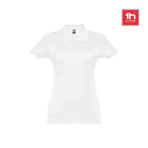 THC EVE WH. Polo manches courtes ceinturé pour femme en coton cardé
