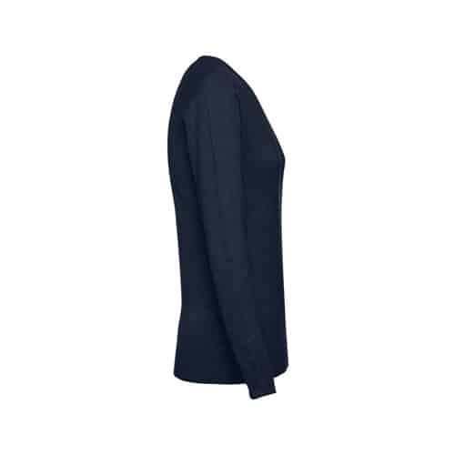 Pullover avec col en « V » pour femme en 70% coton et 30% polyamide (220 g/m²). Col, poignets et bas côtelé. Manches insérées à la mode