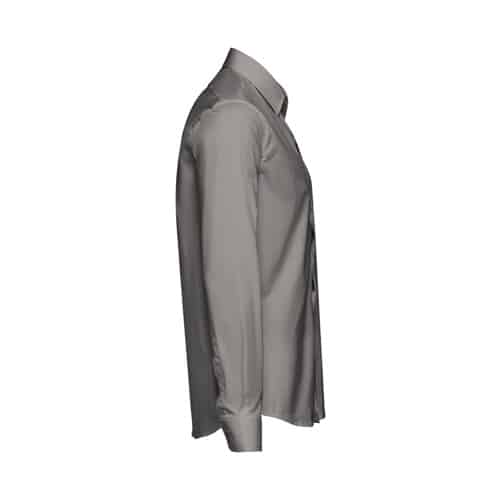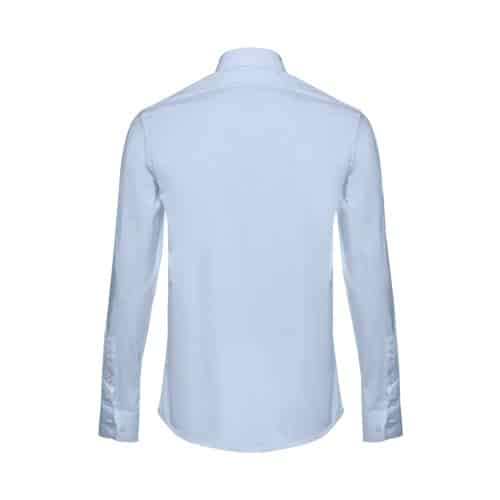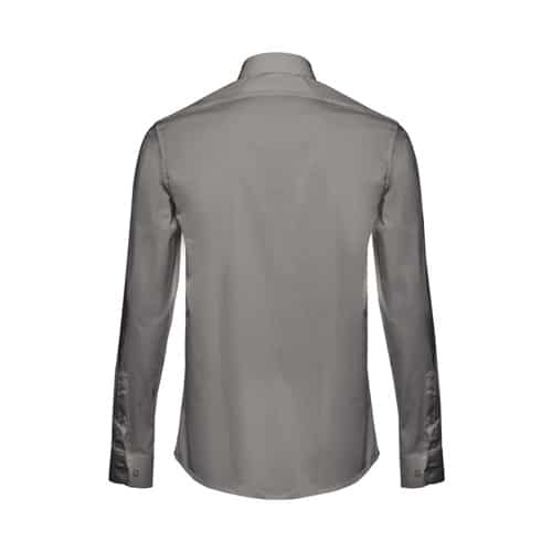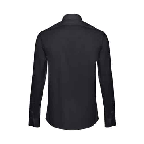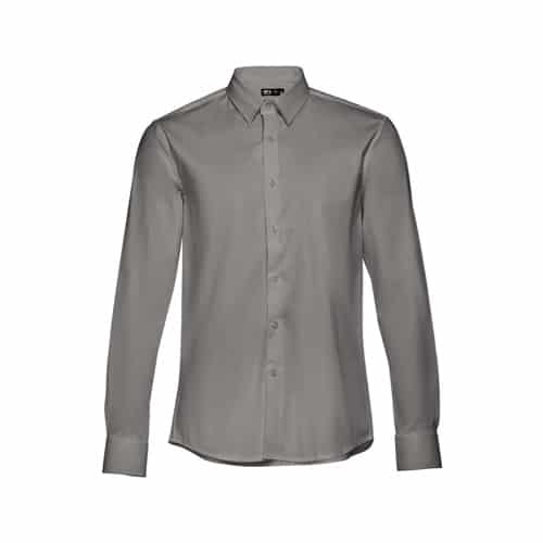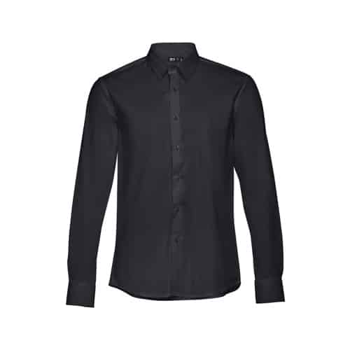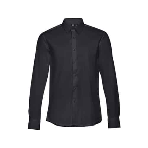 Chemise pour homme à manches longues en popeline en 68% coton, 28% polyamide et 4% élasthane (115 g/m²). Manches longues avec 1 pli et poignets réglables avec 2 boutons. Patte de boutonnage avec 7 boutons à la couleur