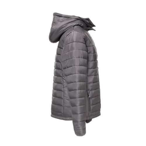 - Capuche rembourrée avec élastique, boutons pression et zip amovible