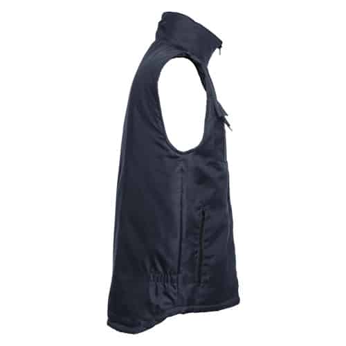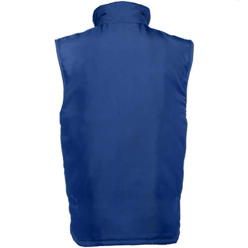 Gilet de travail pour homme rembourré, avec doublure, en 100% polyester oxford avec un revêtement acrylique (170 g/m²) et intérieur en polyster 100% taffetas (65 g/m²). Avec col doublé de maille polaire et élastique latéral pour un meilleur ajustement au corps. Contient 6 poches: 5 à l’avant, dont 2 zippés, plus 1 pour téléphone portable et 1 poche intérieure. Accès avec fermeture à l’arrière pour une personnalisation facile