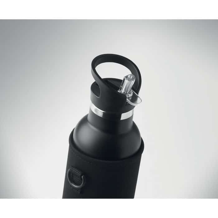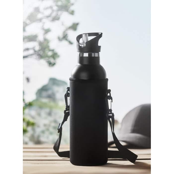 La gourde isotherme TIKSI est conçue en acier inoxydable, assurant une excellente conservation des boissons chaudes ou froides. Son bouchon à vis étanche évite toute fuite, tandis que son capuchon supplémentaire avec paille intégrée interchangeable offre une utilisation facile et polyvalente. Livrée avec une housse de transport en néoprène, elle garantit un transport sécurisé et confortable.