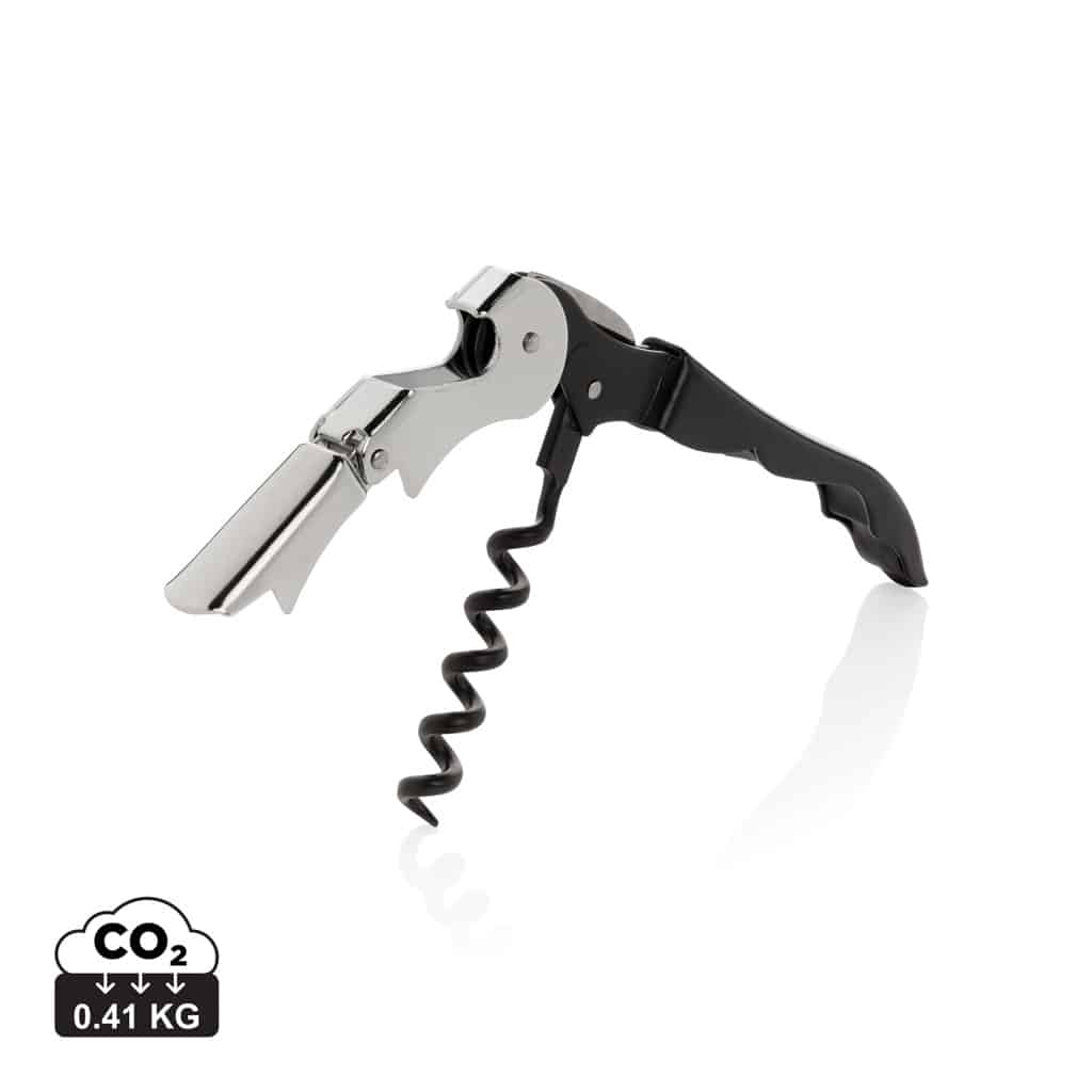 Le tire-bouchon Vino est conçu pour les professionnels exigeants, combinant une lame de coupe capsule, un système d'ouverture à double levier et un décapsuleur intégré. Offrant une prise en main confortable et une manipulation fluide, il garantit une ouverture rapide et sans effort, renforçant l’image d’efficacité et de qualité de votre entreprise.