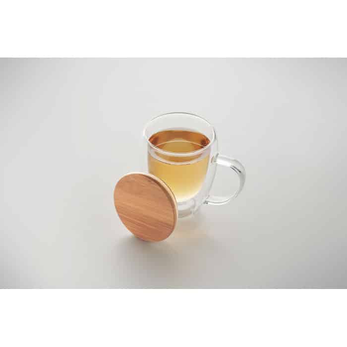 Le mug en verre borosilicate double paroi TIROL allie élégance et fonctionnalité pour valoriser votre communication.