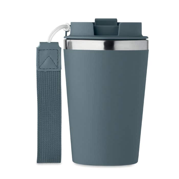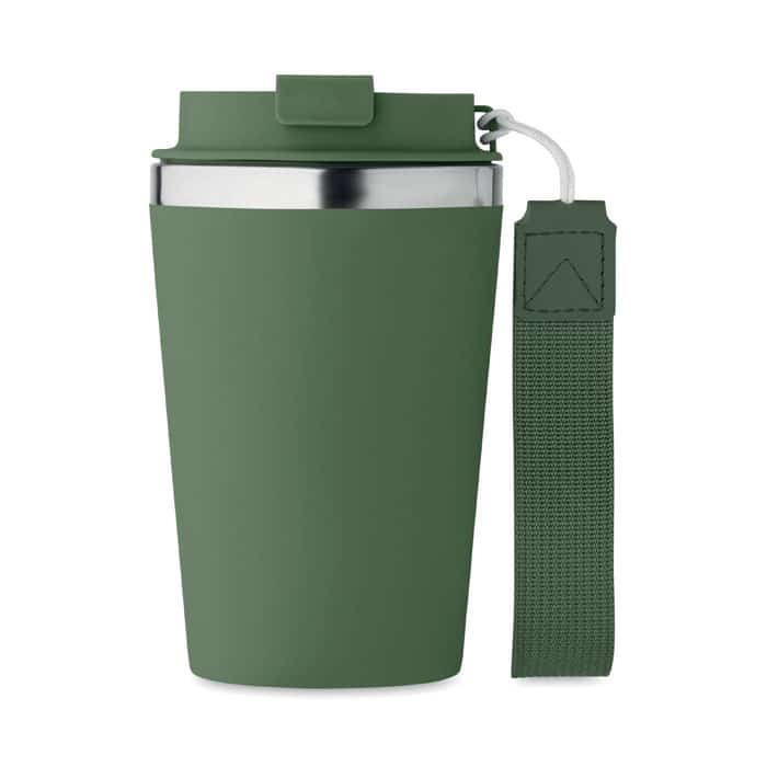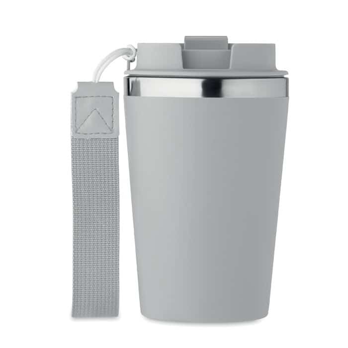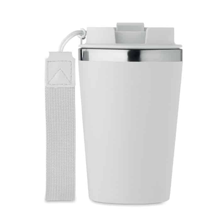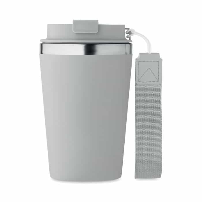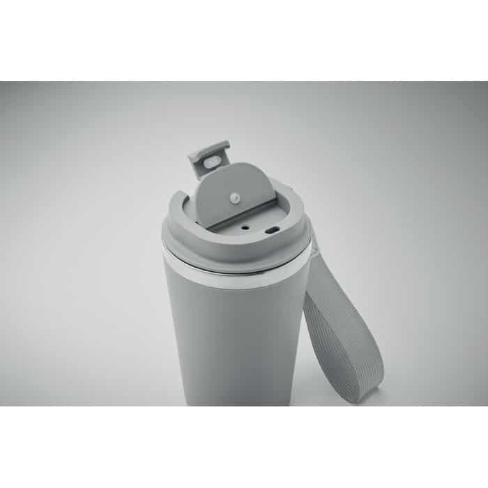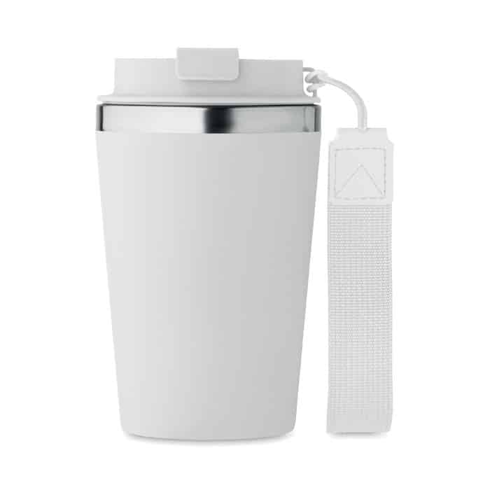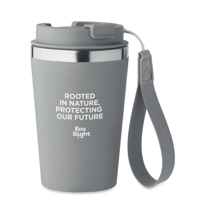 Le TOPAZ est un gobelet double paroi d’une capacité de 350 ml, conçu en acier inoxydable recyclé (90%) avec une couche extérieure en polypropylène et une sangle de poignet en RPET. Ce choix de matériaux responsables souligne votre engagement en faveur du développement durable tout en offrant un objet résistant et élégant.