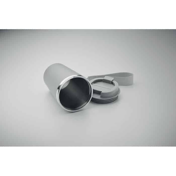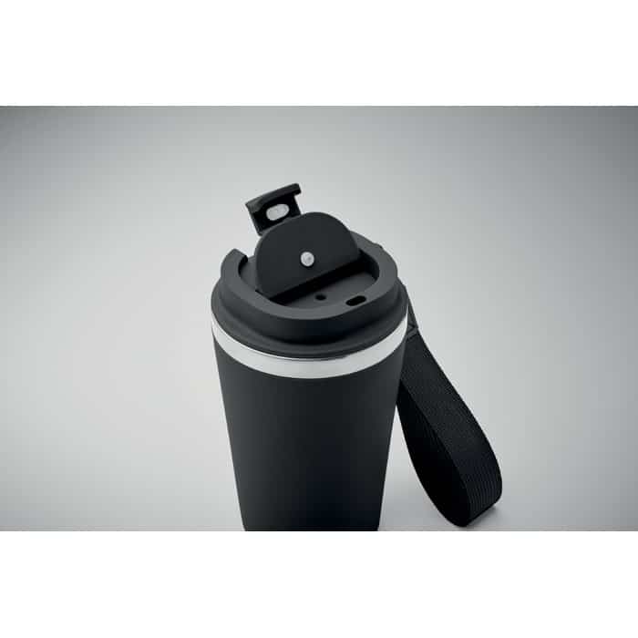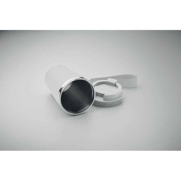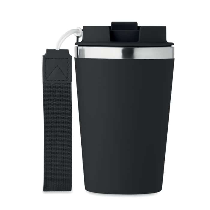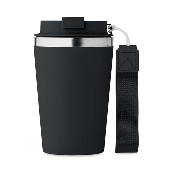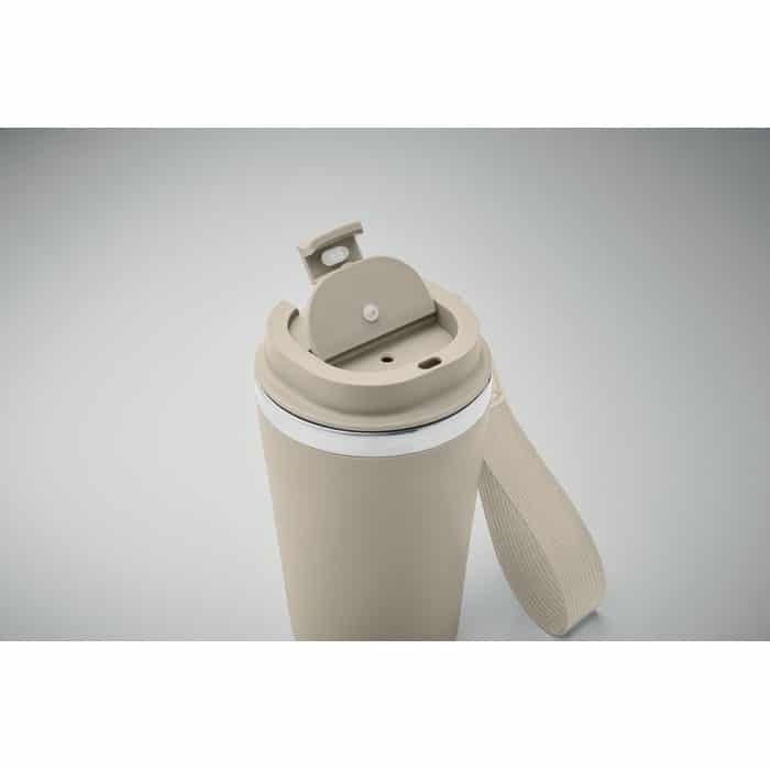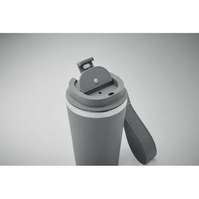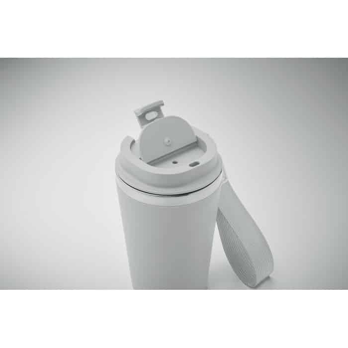Le TOPAZ est un gobelet double paroi d’une capacité de 350 ml, conçu en acier inoxydable recyclé (90%) avec une couche extérieure en polypropylène et une sangle de poignet en RPET. Ce choix de matériaux responsables souligne votre engagement en faveur du développement durable tout en offrant un objet résistant et élégant.