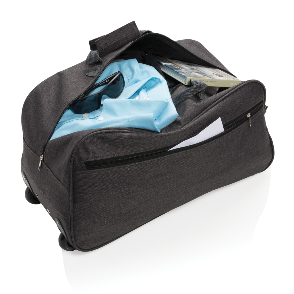 Le trolley weekend personnalisable en 600D haute densité allie praticité et visibilité pour vos déplacements professionnels.