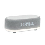Le TUONO est un objet publicitaire moderne combinant un chargeur sans fil 15W, une enceinte Bluetooth 5W, une station météo et une lumière d’ambiance. Doté d’un design en ABS robuste, il intègre également un réveil avec affichage de l’heure et de la température, pour un usage quotidien pratique et apprécié.