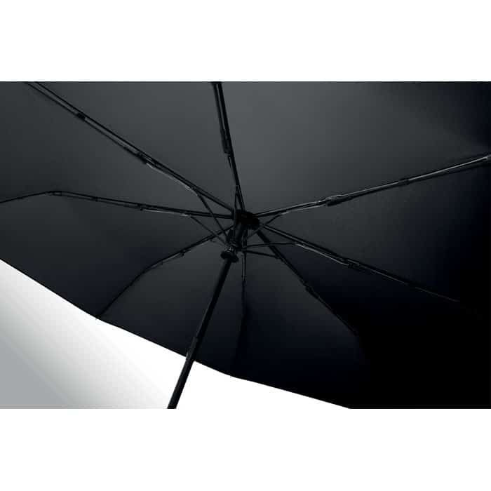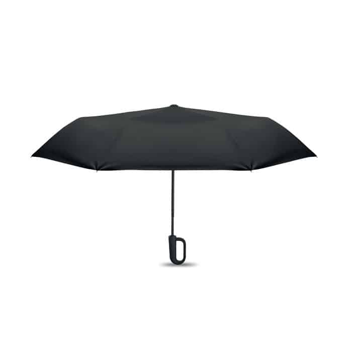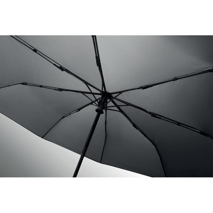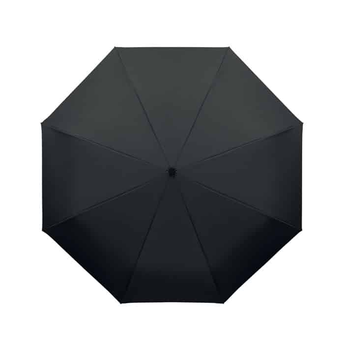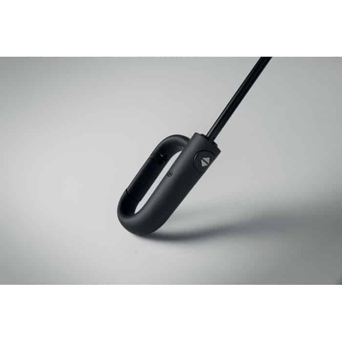 Le parapluie UMKRAB se distingue par sa structure en fibre de verre noire intégrale, assurant une excellente résistance au vent grâce à ses deux sections et ses baleines en fibre de verre. Ses panneaux en pongee 190T RPET confèrent une finition soignée et un toucher agréable. Il est équipé d’un manche en forme de D avec une finition caoutchoutée pour une prise en main confortable et antidérapante. Son système d’ouverture et de fermeture automatique garantit une utilisation rapide et facile au quotidien.
