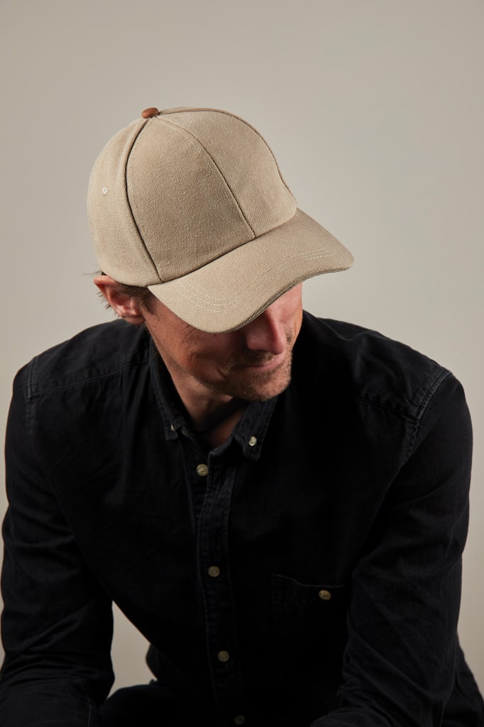 Ajustement velcro recouvert de PU, circonférence maximale 63 cm, visière incurvée, construction à 6 panneaux.