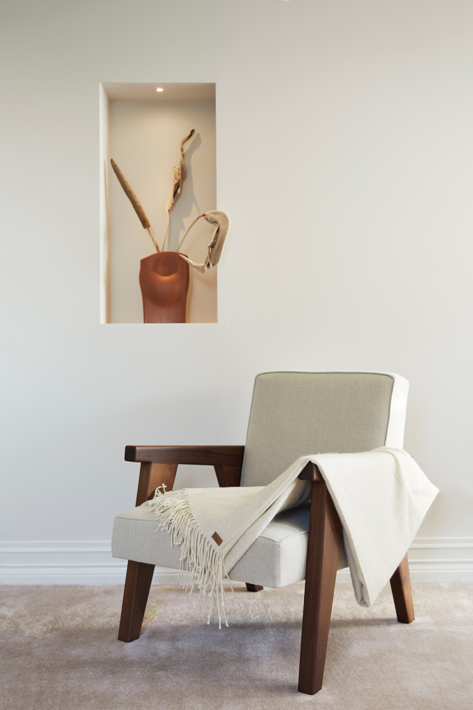 Conçue en matériau synthétique imitant la fibre de laine, elle combine douceur et facilité d’entretien.