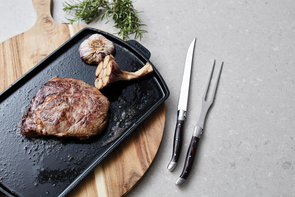 Le VINGA Ensemble de tranchoirs Gigaro se compose d’un couteau et d’une fourchette au design bistro français, parfait pour une communication d’entreprise raffinée. Son manche en pakkawood noir offre une prise en main confortable tandis que les lames en acier inoxydable garantissent durabilité et performance. Livré dans une boîte cadeau exclusive, cet ensemble est idéal pour renforcer l’image de votre société.