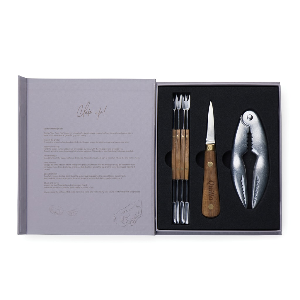 Ce set est idéal pour être offert lors de salons professionnels, événements corporate ou campagnes promotionnelles ciblant les amateurs de gastronomie et les professionnels du secteur agroalimentaire. Sa conception robuste et ergonomique permet un usage quotidien dans les dégustations ou démonstrations de fruits de mer, renforçant ainsi le confort et la satisfaction des utilisateurs.