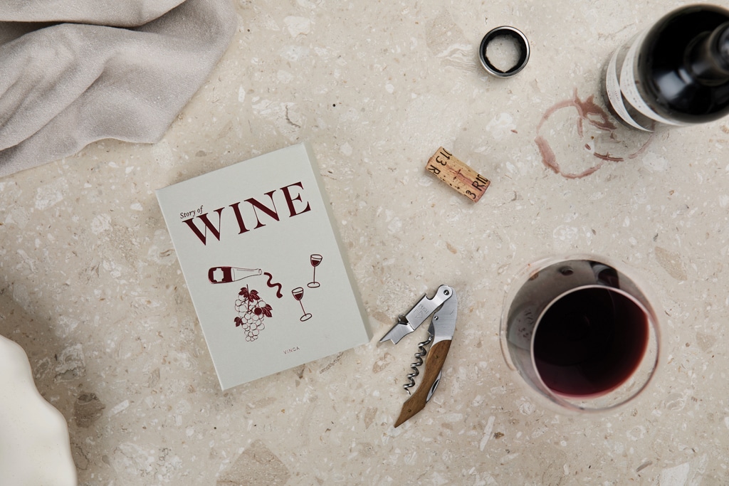 Le coffret Histoire du vin se présente dans une boîte cadeau au design unique, imitant un livre ancien, fabriquée en papier certifié FSC®, garantissant un engagement écologique. Ce packaging soigné valorise votre image de marque tout en protégeant les accessoires à l’intérieur.