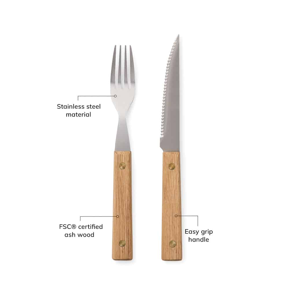 Parfait pour accompagner vos repas en extérieur, ce set de couverts est conçu pour une utilisation facile et agréable lors de barbecues, déjeuners d’affaires ou pauses déjeuner en entreprise. Sa robustesse et son confort d’utilisation en font un accessoire pratique pour vos collaborateurs ou clients, renforçant leur expérience autour d’un moment convivial.