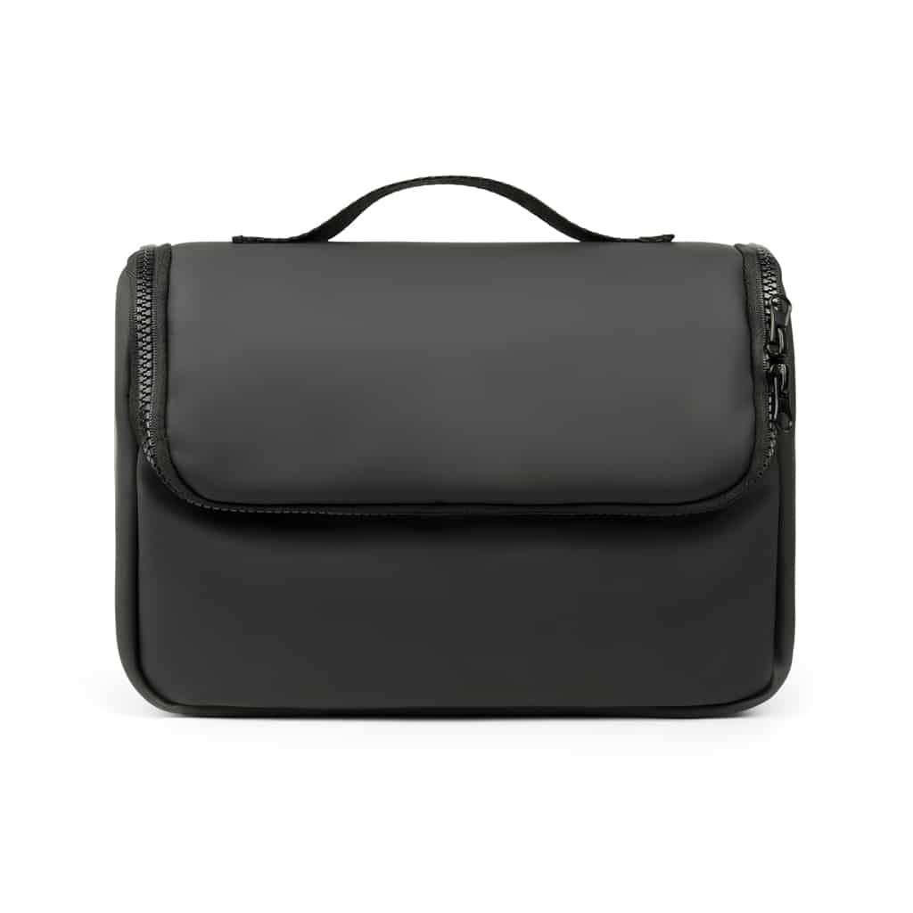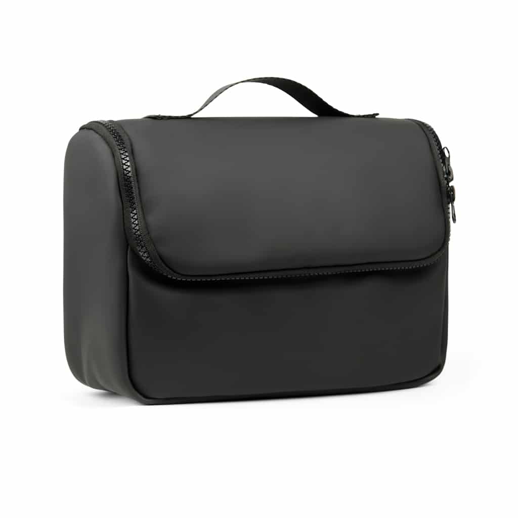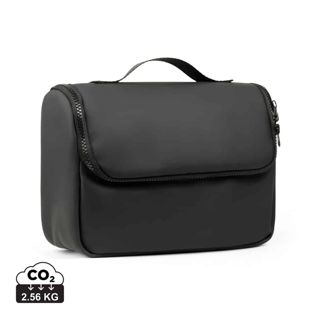 Découvrez la trousse de toilette de voyage personnalisable en nubuck-PU déperlant, idéale pour vos déplacements professionnels.