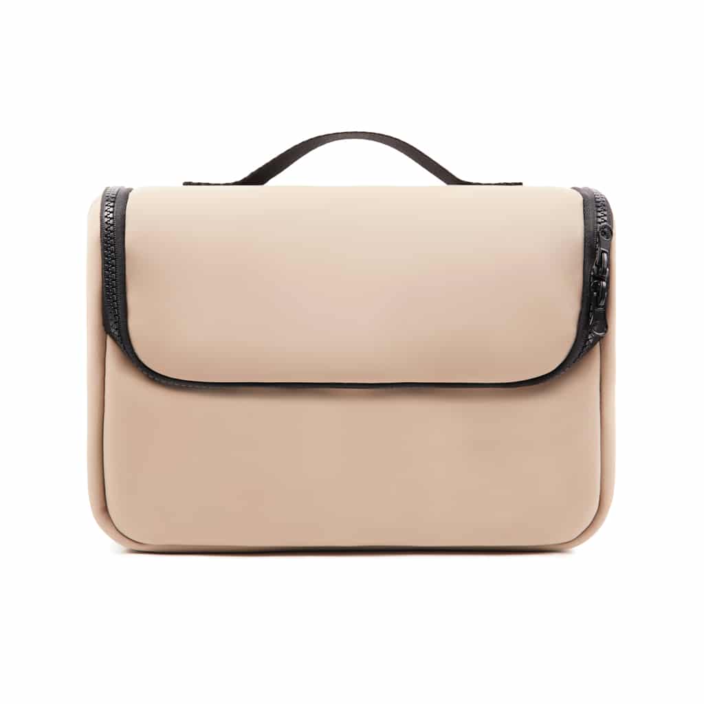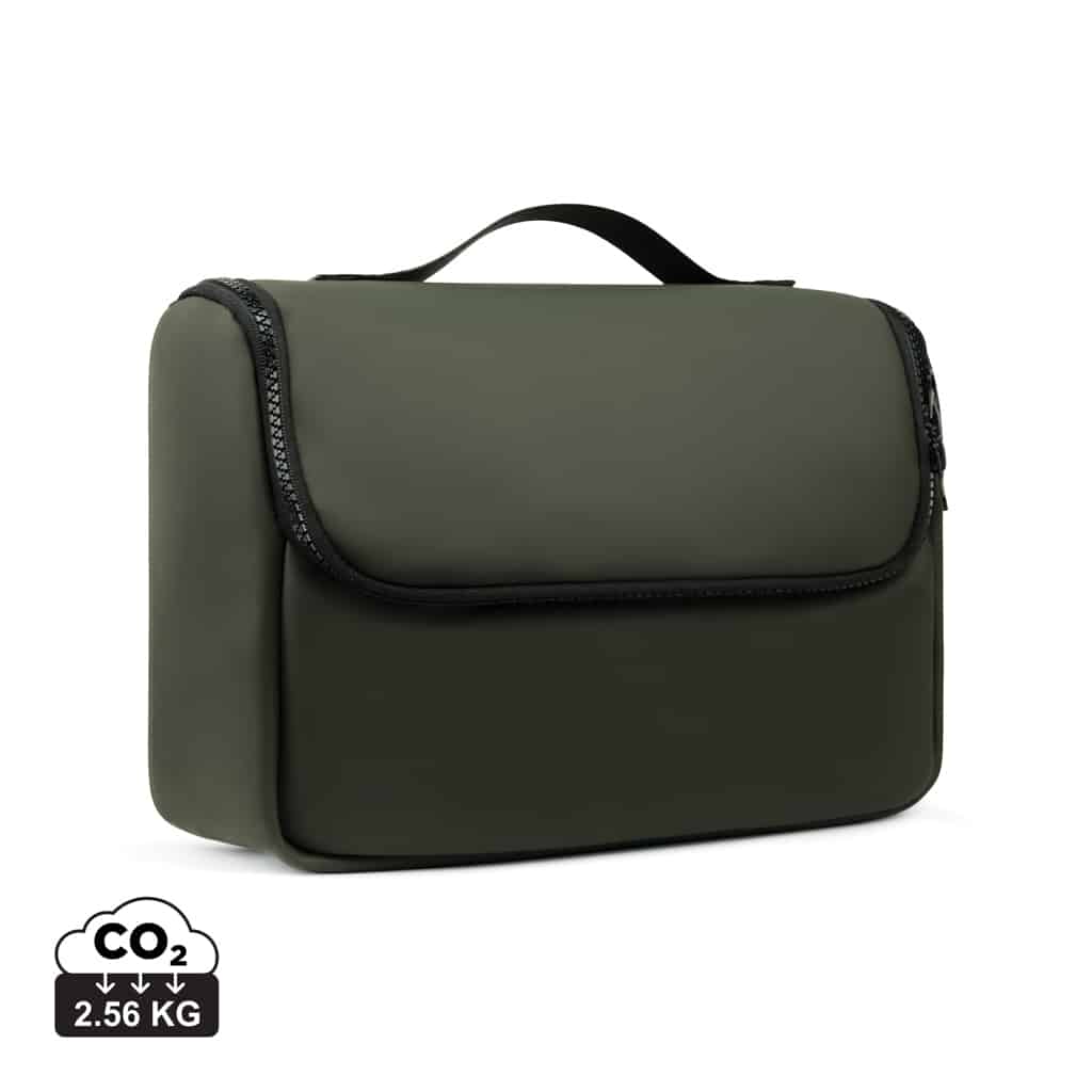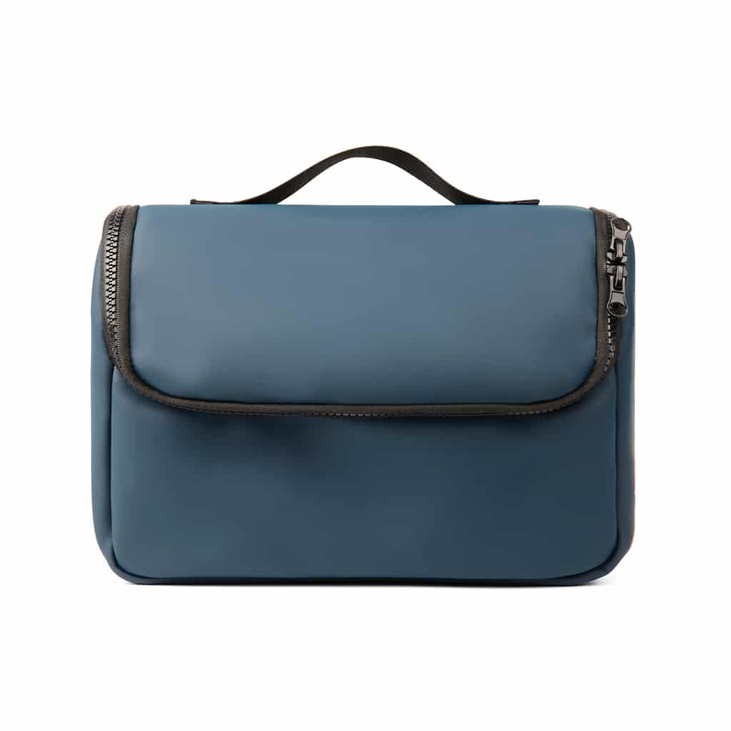 Découvrez la trousse de toilette de voyage personnalisable en nubuck-PU déperlant, idéale pour vos déplacements professionnels.