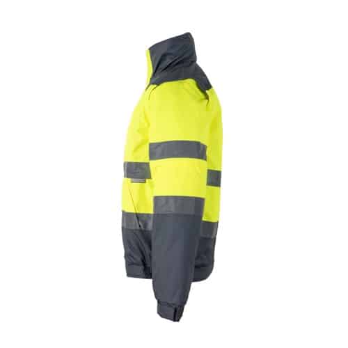 Veste rembourrée bicolore (180g/m²) en polyester (100%), avec finition PU. Fermeture éclair, cachée par une patte de boutonnage, qui se ferme par une bande auto-agrippante. Taille et poignets avec élastique sur les côtés. Bandes réfléchissantes sur le torse et les manches. Capuche dissimulée dans le col et manches amovibles. Contient cinq poches (1 poche poitrine, 2 poches avant, 1 poche sur le bras gauche et 1 poche intérieure). Produit conforme au règlement (UE) 2016/425, certifié par EN20471 et classe Nº 2