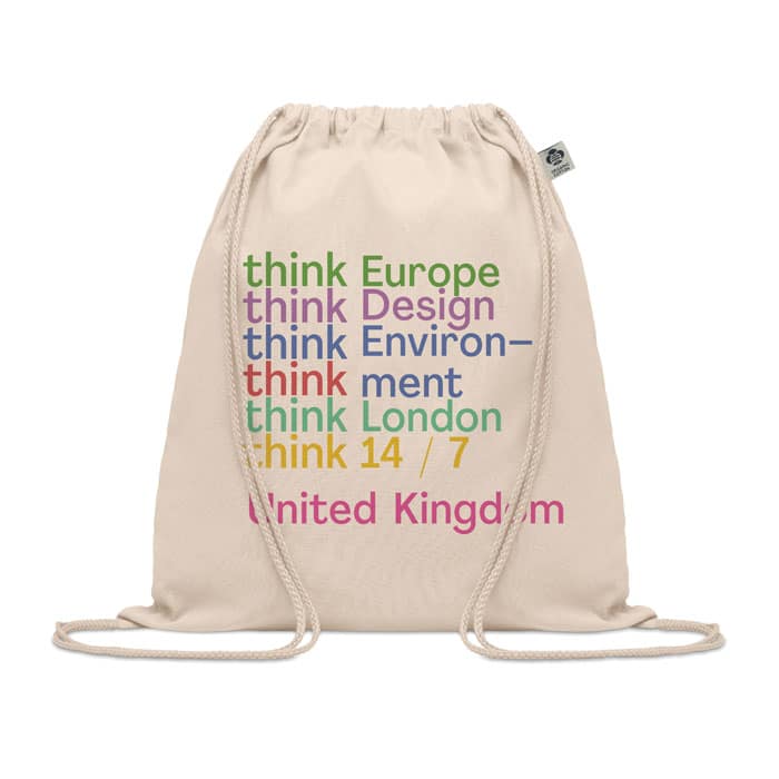 Le sac à cordon YUKI en coton biologique 140 g/m² allie écologie et visibilité pour votre communication d’entreprise.