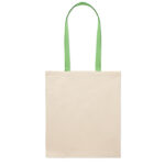 Le sac ZEVRA est un shopping bag en coton léger et robuste, idéal pour mettre en valeur votre logo ou message. Avec ses anses longues colorées, il permet un port confortable à l’épaule, facilitant le transport même lorsque le sac est chargé.